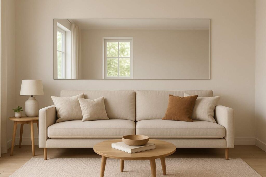 Dica extra: Você pode encontrar espelhos econômicos em lojas populares ou até reaproveitar espelhos antigos, apenas trocando a moldura. Uma moldura feita de palha natural ou corda artesanal pode ser feita à mão, com tutoriais simples disponíveis online — gastando muito pouco.